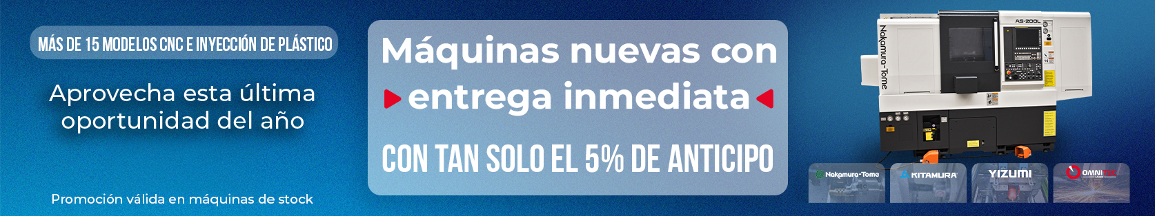 - Moderniza tu operación con equipos de alto desempeño: Centros de maquinado, Centros de torneado, Inyectoras de plástico, Centros de maquinado tipo suizo, Dobladoras y Cortadoras láser.